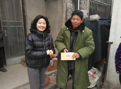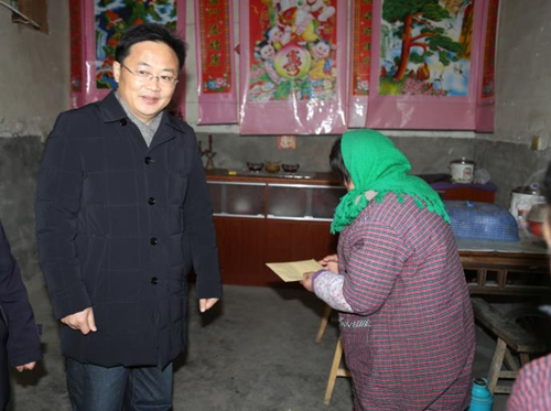 住建局党员干部们在村干部的带领下,挨家挨户走访,询问新的一年里他们对生活的憧憬和打算,并送上慰问金。