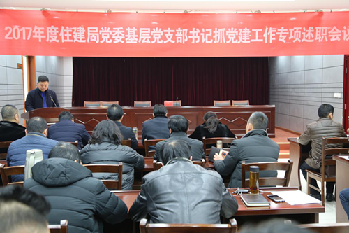 2月2日下午,住建局党委组织召开2017年度住建局党委基层党支部书记抓党建工作专项述职会议。局党委领导班子全体成员,各挂牌机构领导班子全体成员, 县纪委第十二派驻纪检监察组组长杨华年,各基层党(总)支部正、副书记,各基层单位、机关各科室主要负责人参加了会议。