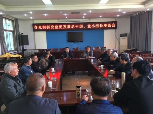 3月27日上午,春光村围绕2018年度工作目标,邀请原村两委老干部张维富、孙长青、吴学富、王永美、侯庆东、鲁顺帮等老同志,8名党小组长召开一次"抓党建促发展"主题座谈会,村两委主要负责同志参加了座谈会。