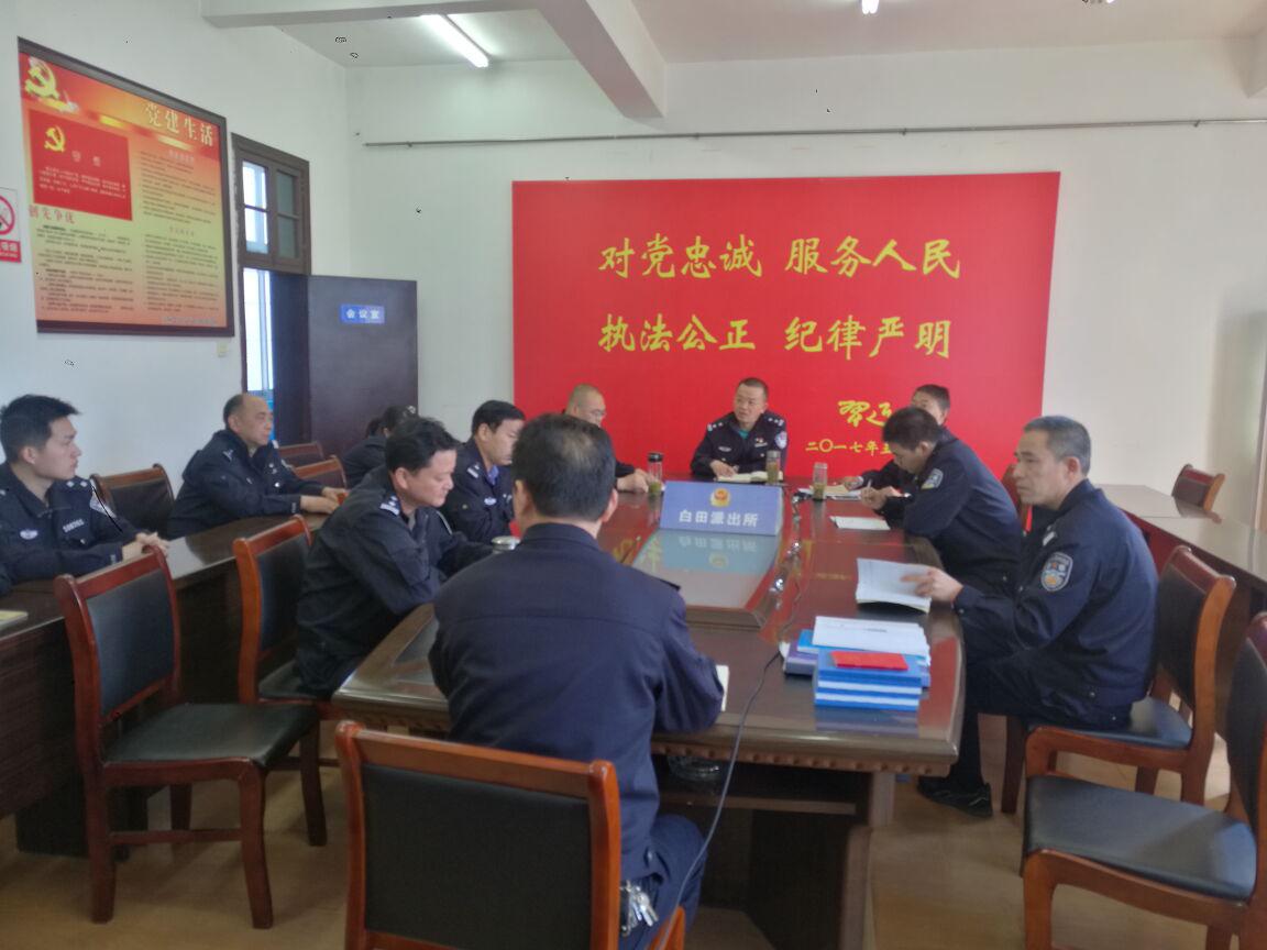 4月20日“统一活动日”,白田派出所党支部召开党员大会,集中开展学习教育活动,全体党员参加集中学习。