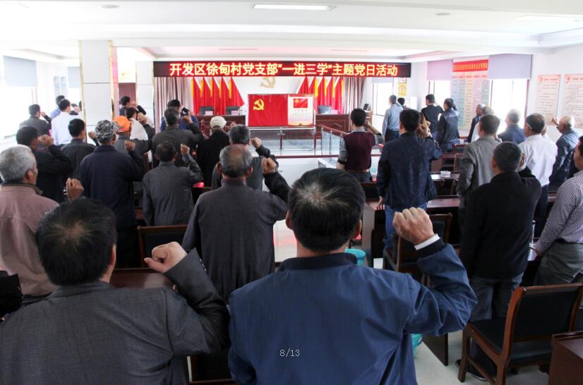 5月23日上午,开发区“一进三学”主题党日活动走进徐甸村党支部,区组织人事科、各村(社区)党务工作负责人及徐甸村全体党员参加活动。