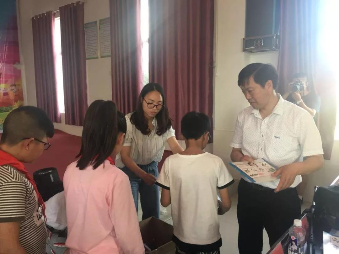 活动中,尹萍讲述了21世纪中国少年儿童应肩负的时代责任,鼓励他们珍惜美好时光,好好学习,天天向上。周秀丽详细的询问了孩子们的家庭情况、学习状况,面对孩子们存在的困惑,一一解答,悉心呵护每颗幼小的心灵。随后,她们向30名留守儿童赠送学习用品,合影留念。