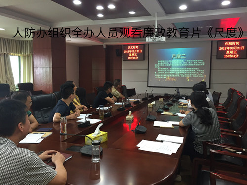 9月21日下午,按照县纪委统一部署和安排,为加强廉洁教育、狠抓作风建设,县人防办党支部组织全体党员干部职工集中重温反腐宣传片《尺度》。通过观看《尺度》,全体党员、职工对操办婚丧喜庆事宜应该把握的尺度有了更清晰的认识,纷纷表示,将严格遵守纪律规定,坚决不碰纪律“红线”。
