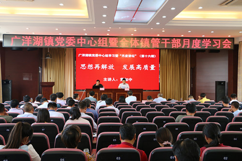 为进一步认真学习贯彻习近平新时代中国特色社会主义思想和党的十九大精神,推进我镇解放思想大讨论活动全参与、广覆盖、增实效。近日,广洋湖镇举行解放思想专题月度讲坛,全镇200余名党员干部参加了活动。