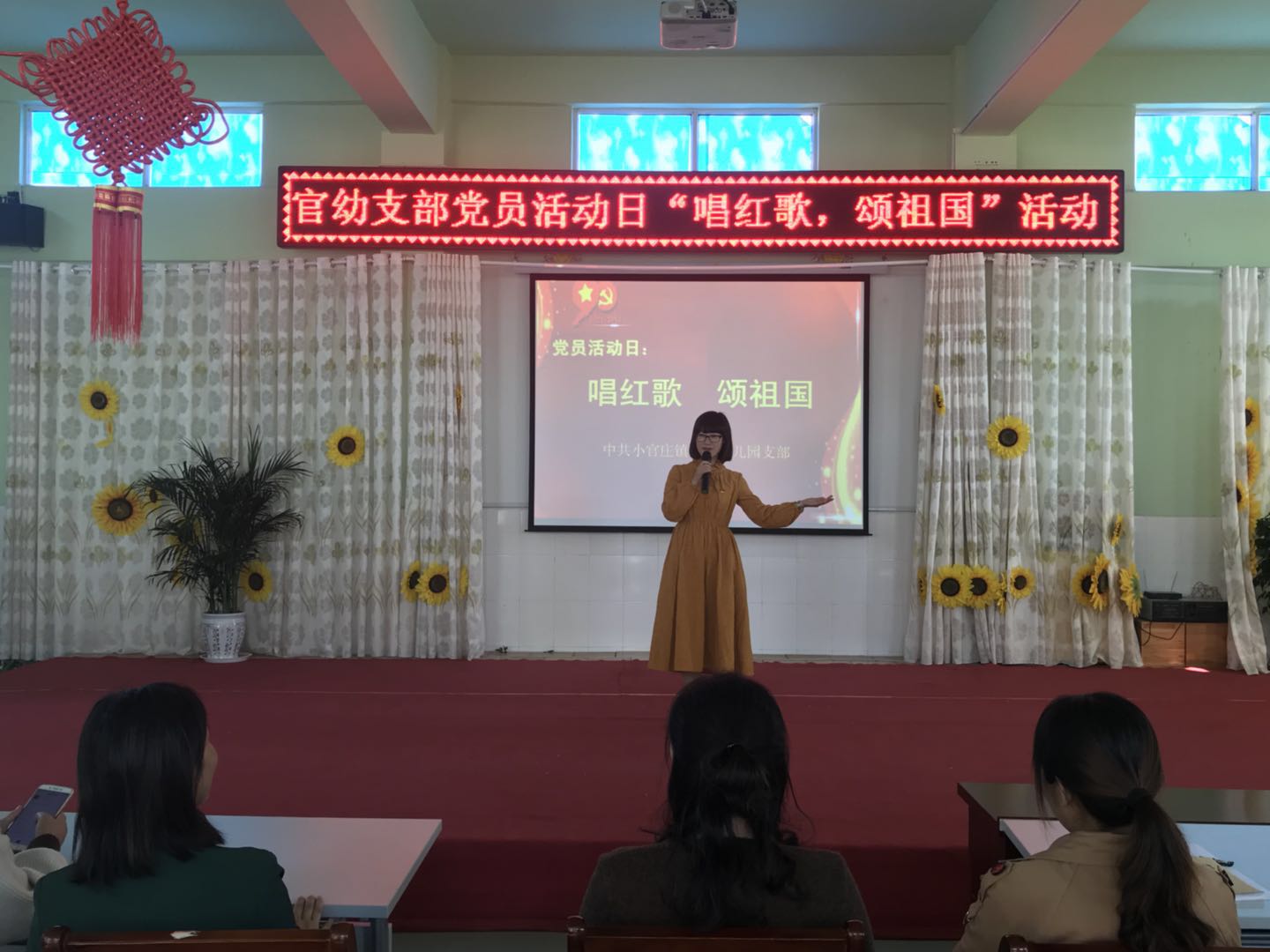 为进一步弘扬红色文化,增强党员教师爱党、爱国的责任意识,丰富支部教育活动形式,10月19日中午,小官庄镇中心幼儿园党支部组织开展“唱红歌 颂祖国”主题党日活动。