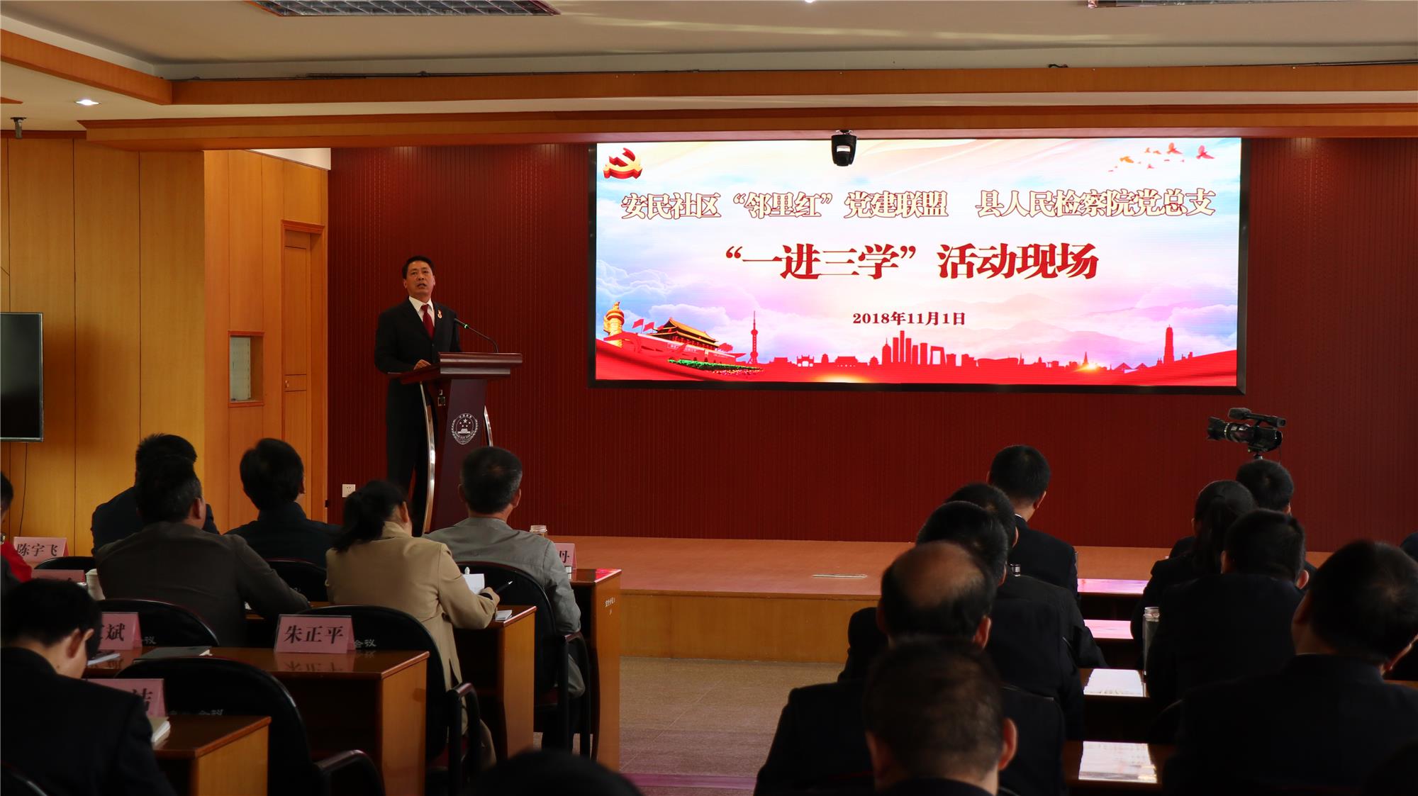为认真贯彻落实习近平新时代中国特色社会主义思想和上级党组织的要求,不断深化“我是党课主讲人”的内容和形式,有效展示开展“解放思想大讨论”活动成果,学习、总结和推广基层党组织的成功经验,11月1日上午,县检察院党总支联合安民社区“邻里红”党建联盟开展了“走进基层党支部,学主题、学方法、学流程”活动,组织税务局、卫生局、法院、司法局、总工会、市场监督管理局安宜分局、计量所、农业机械训练学校、城北中学、托幼中心、第二实验幼儿园、桃园小学、安民社区等党建联盟成员单位和宝应县院的党务干部、全体党员及干警观摩了检察院第一党支部开设的“领读式”党课示范现场,院党组副书记、副检察长张勇和第一党支部书记侯维白、党支部委员孙闻文先后为大家上了示范课。院党总支书记房荣泰对活动进行了点评,认为第一党支部开设的“领读式”党课主题突出、方法新颖、流程科学,值得院其他党支部学习和借鉴;三名授课人既领读了从严治党的理论,又为大家解释了所学理论的核心要义,同时交流了自己的学习体会和对所学习理论进行实践的措施,其政治站位和理论联系实际的作风值得推广。安民社区党总支书记邱娟主持活动。