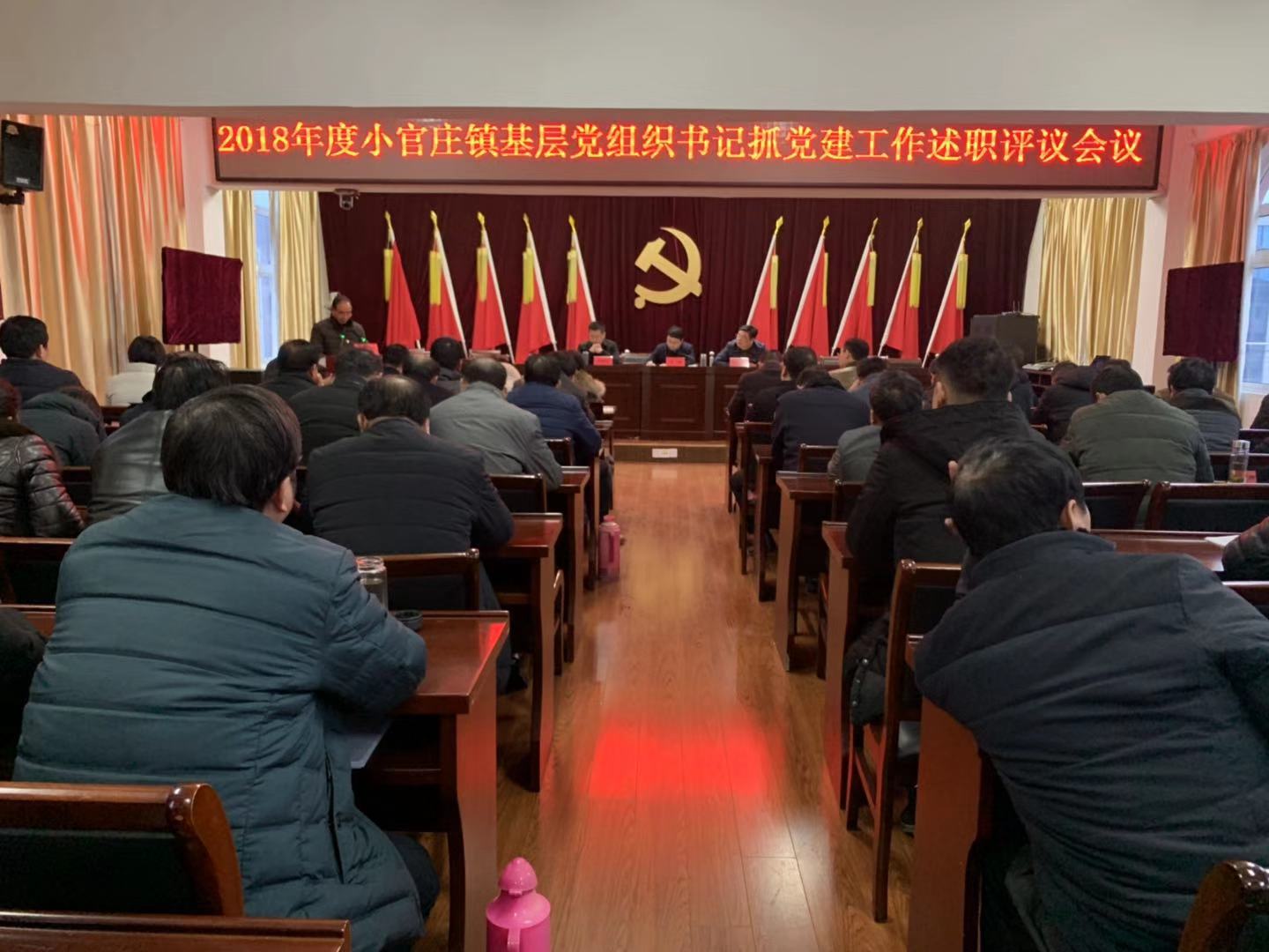 1月4日,小官庄镇召开2018年度基层党组织书记抓党建工作述职评议会。全体镇村干部、各单位副职以上干部共计70余人参加会议。