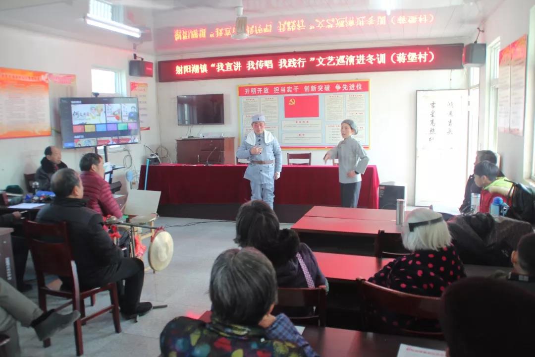 冬训帷幕拉开后,我镇重点积极推进“新时代文明实践”活动,打造“理论+文艺”宣讲品牌,将理论知识以群众喜闻乐见的方式表演出来,让歌曲、戏剧、小品、快板等节目成为理论政策的“翻译机”,冬训期间进村居、进企业、进学校进行宣讲演出。