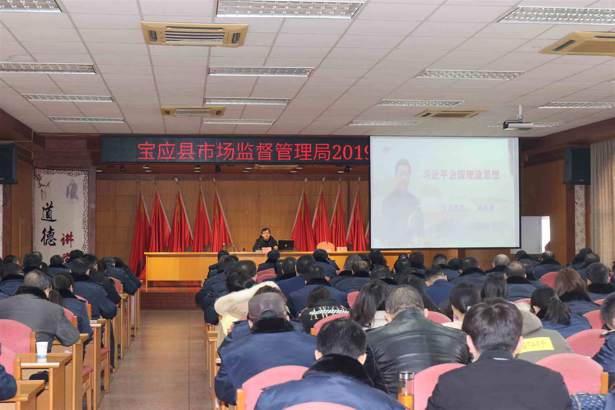 为深入学习领会习近平治国理政思想,深刻认识习近平治国理政中的马克思主义科学世界观和方法论,自觉用党的创新理论武装头脑、指导实践、推动工作,2月12日上午,县市场监管局党委在新年春训班上举办了党的创新理论专题辅导报告会,特别邀请了县委党校周欢贤老师为全系统党员干部作了《习近平治国理政思想》的专题辅导报告,局党委成员、机关及分局全体党员干部和各基层单位的班子成员听取了报告。