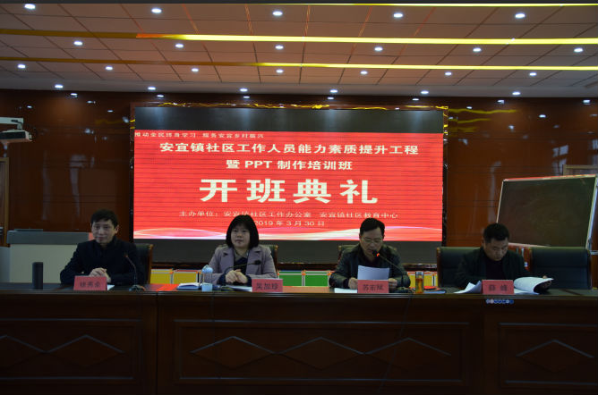 3月30日下午,安宜镇社区工作人员能力素质提升工程开班仪式在叶挺桥小学举行,全镇120多名社区工作人员参加。