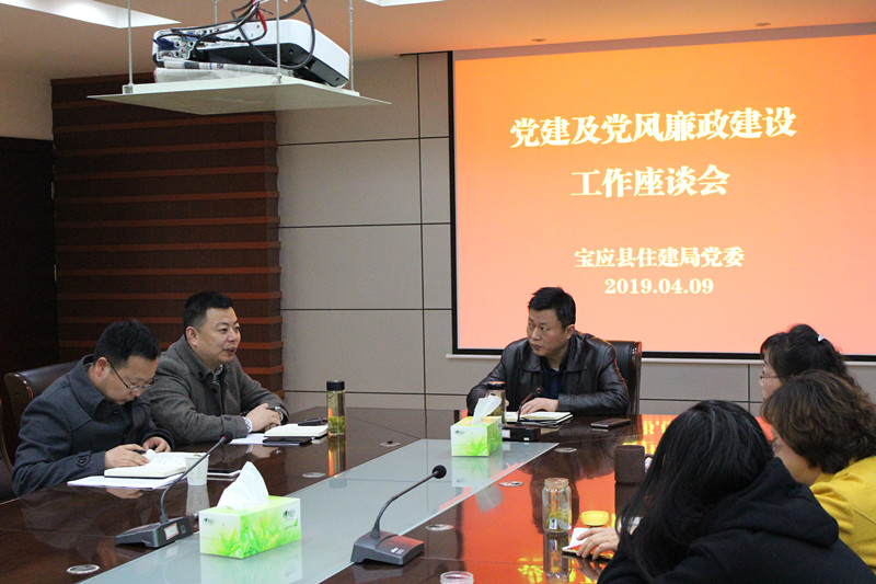 4月9日下午,县住建局党委召开党建及党风廉政建设工作座谈会,围绕如何发挥党建优势,以及深入推进党建及党风廉政建设工作谈经验、说办法、提建议。局党委书记吴斌主持会议。