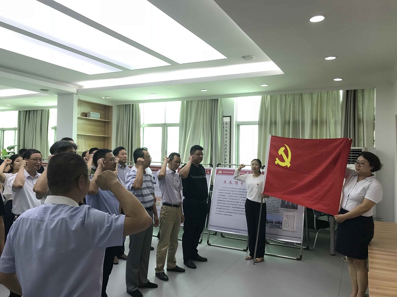 活动最后,局党委副书记季晓云带领全体党员干部庄严地举起右拳,面对中国共产党人初心之地,面对着鲜红的党旗,齐声重温自己的入党誓词,重温自己的入党初心和使命。