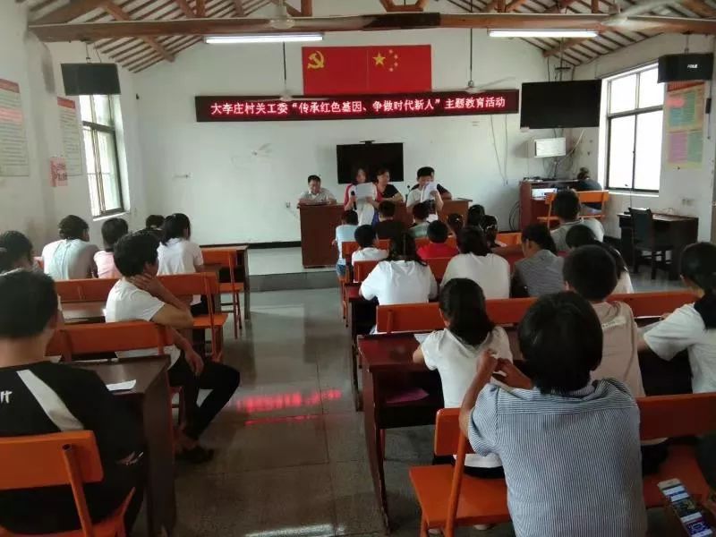 8月18日上午,开发区大李庄村党支部在村部会议室举办“传承红色基因,争做时代新人”主题教育活动。来自本村的32名中小学生参加活动。