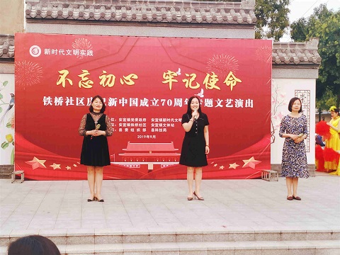 铁桥社区党委联合安宜镇新时代文明实践所、安宜镇文化站开展大型文艺演出,参与这次演出的演员,绝大多数是社区的居民群众、党员、医生及社区工作人员,他们深情地表示:“我们要用歌声表达对祖国母亲的祝福,用舞蹈抒发出祖国的繁荣和人民的幸福、安康。”