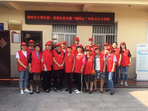 桃园社区党总支结合“不忘初心 牢记使命”主题教育,组织党员群众志愿者在国庆节前夕开展 “践行初心使命,献礼新中国成立70周年”卫生大扫除活动,净化辖区环境,提升居民群众的获得感、幸福感。