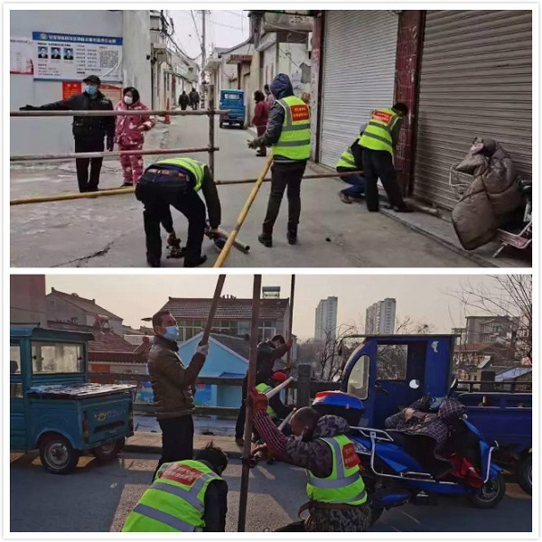 老城区小巷多、出口多,如何有效防止人口流动?2月7日,安宜镇建管站接到封闭老城区任务指令后,主要负责人第一时间到各个社区实地调研。早上七点准时到封闭工地,晚上十点以后结束工作。在全站党员干部和施工人员的共同努力下,三天时间,使用拖拉机4台17次,钢管1.8万米,卡夫8600个,将老城区16个社区343个卡口全部封闭到位,为老城区居民构筑了一道钢铁防线。