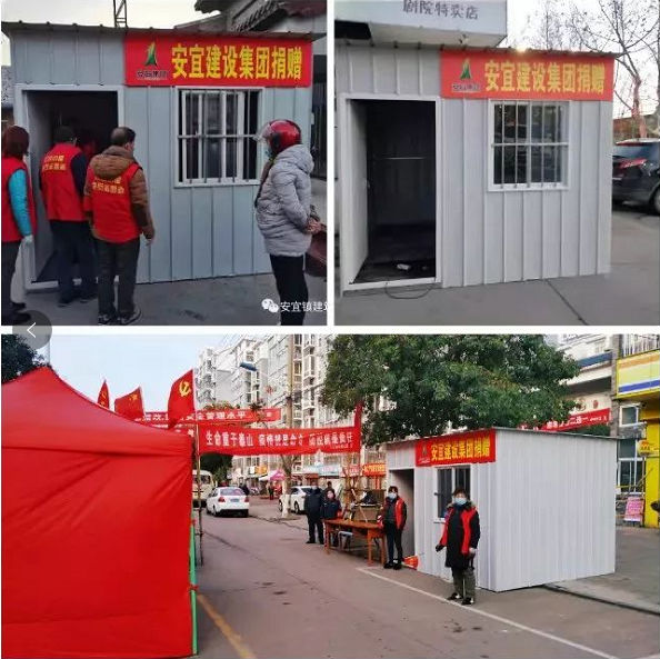 疫情发生以来,安宜建设集团党委积极投入疫情防控工作,第一时间抽调钢管1000多根、卡夫3000个、集装箱3个支援安宜镇老城区卡口封闭执勤工作,为居民构筑钢铁防线。同时,安宜建设集团党委无偿投入15万元,组织党员职工加班加点赶制了20套活动板房,给一线执勤人员遮风挡雨。党委号召企业党员群众积极参与捐款支持全县疫情防控工作。