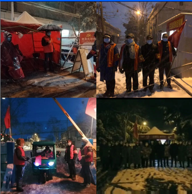 疫情在前,又逢寒流来袭,武术协会党支部、鹊桥协会党支部、小雨伞志愿者协会党支部、北港蔬菜生产专业合作社党支部等也都带领党员志愿者坚守在社区卡口。