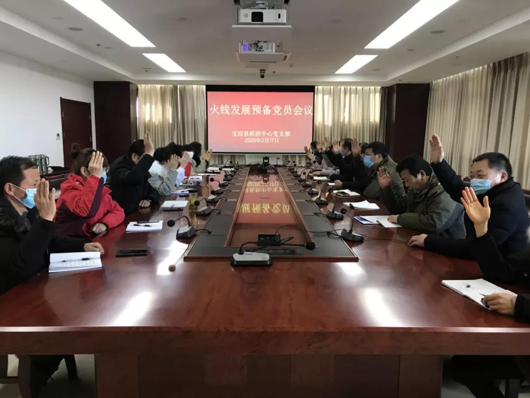 2月17日下午,宝应县疾控中心党支部召开党员大会,全体与会党员一致同意入党积极分子任涛火线入党。经上级党组织批准同意,24小时值守的任涛在集中医学观察点抗疫一线宣誓入党,成为一名光荣的中国共产党预备党员。