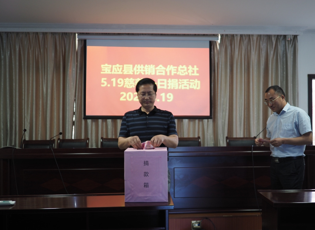 今年5月19日,是扬州市第19个“5.19慈善一日捐”活动日,宝应县供销合作总社党委书记、主任庄义宽率全体干部职工带头捐款,用实际行动号召全体干部职工弘扬中华民族扶贫济困、乐善好施的传统美德,营造积极投身慈善扶贫、慈善救助,参与慈善的良好氛围。