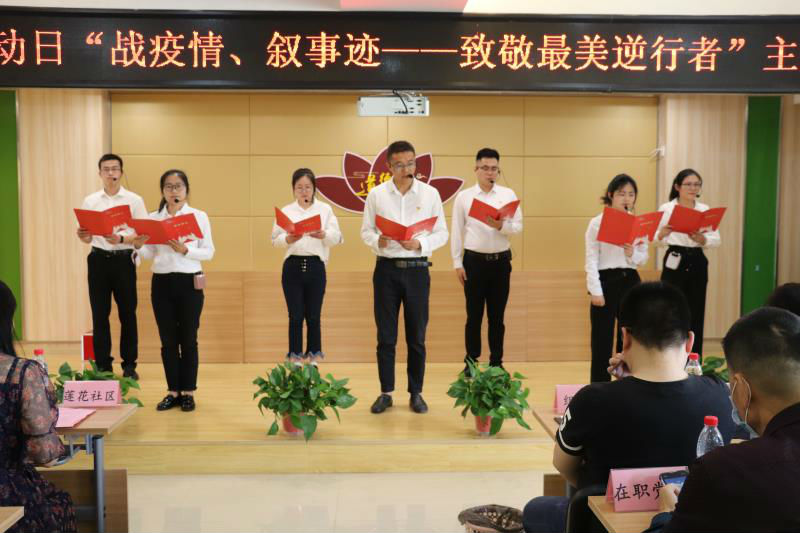 大家对莲花社区在疫情防控中的工作给予了充分的肯定。活动的最后,莲花社区志愿者带来众志成城抗击疫情诗朗诵,向那些“最美的逆行者”致敬。