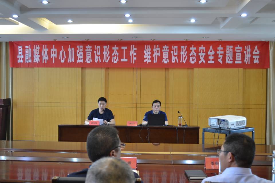 为认真贯彻落实中央和省市县委关于加强意识形态工作的决策部署,5月29日下午,县融媒体中心邀请县委党校教研科长、高级讲师黄如中作了“加强意识形态工作维护意识形态安全”专题宣讲会,中心党委委员、副主任赵玉海主持会议,中心全体中层干部和在职党员聆听了宣讲。