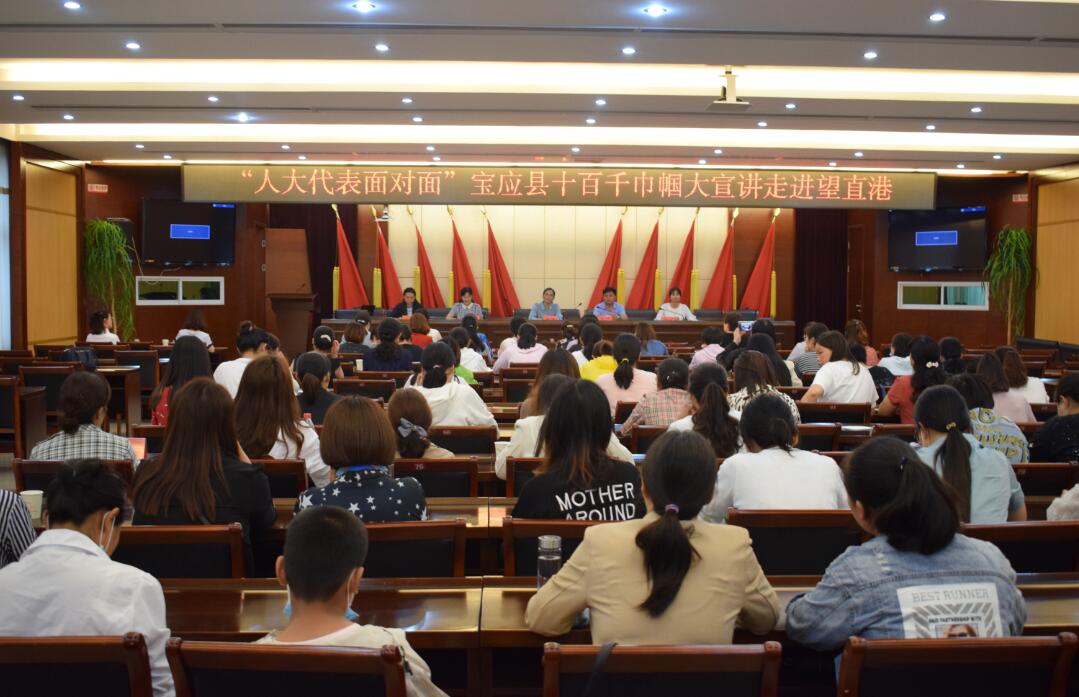 6月16日下午,宝应县“十百千巾帼大宣讲”活动在望直港镇举行。全国人大代表莫元花、县人大代表朱雪梅、许蓉三位女代表回到“娘家”,与基层妇联干部及妇女群众代表零距离互动,面对面宣讲全国及县人代会会议精神。县妇联主席韩群、望直港镇党委副书记鲁军、县妇联副主席张丽玲出席活动,县妇联兼(挂)职副主席、执委、城区部门单位妇联主席、镇(区)妇联主席、望直港镇村(居)妇联主席及单亲贫困母亲代表等近150人现场聆听宣讲。