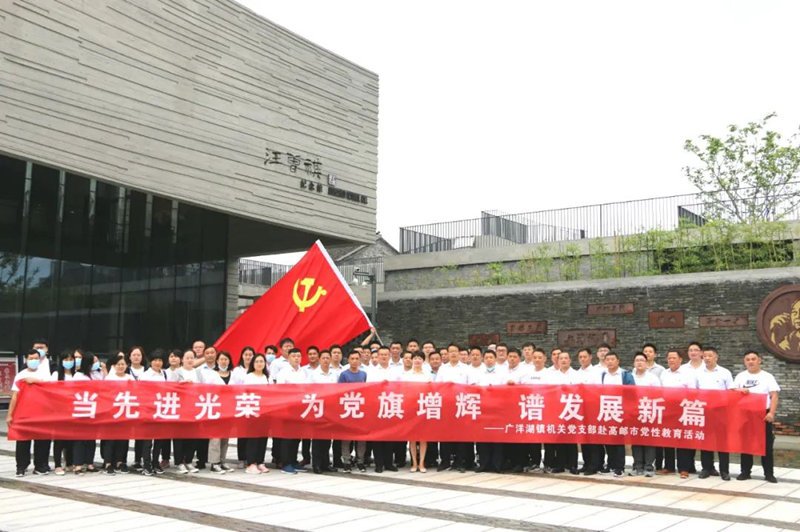 为庆祝建党99周年,提升广洋湖镇党员干部创新力和凝聚力,7月4日上午,广洋湖镇组织机关支部全体党员干部赴高邮市开展“当先进光荣 为党旗增辉 谱发展新篇”党性教育活动。镇机关全体干部及各村居党组织书记近60人参与活动。