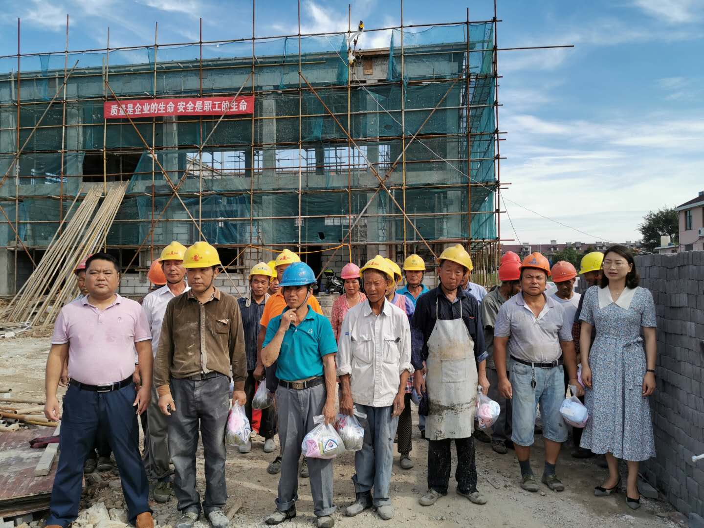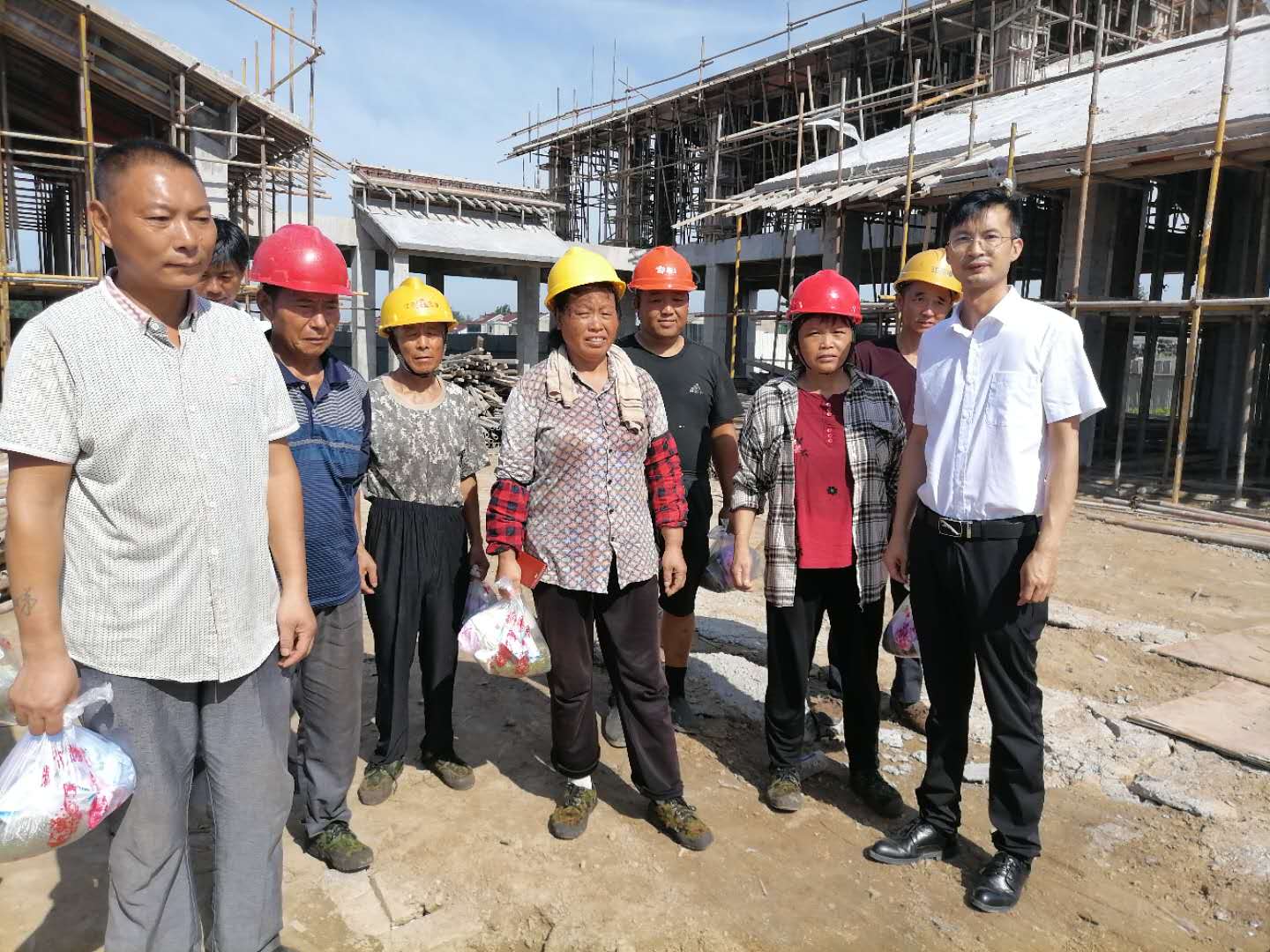 连日来,天气逐渐进入了酷夏模式,气温节节攀升。为督促党群服务中心施工进度,确保高温天气一线工人身心健康,近日,山阳镇党建条线相关领导及劳动所一行前往党群服务中心施工现场,为工作在一线的工人们送上夏日的一缕清凉。