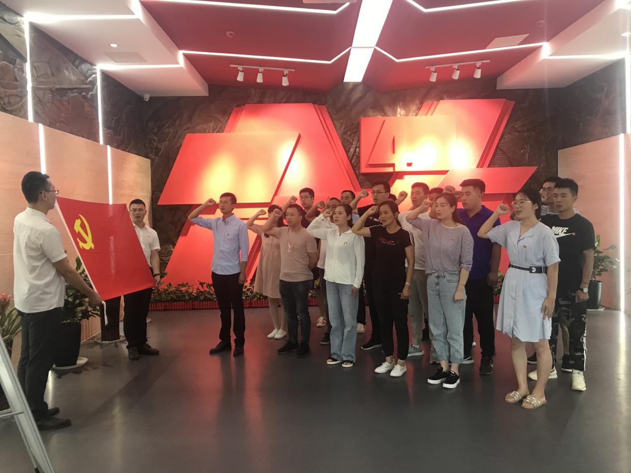 “我志愿加入中国共产党,拥护党的纲领,遵守党的章程……”在红枫园展厅,预备党员们面对神圣的党旗庄严宣誓。洪亮的声音,响彻展厅上空,表达了预备党员们为党旗添彩、为党徽增光的豪迈激情。