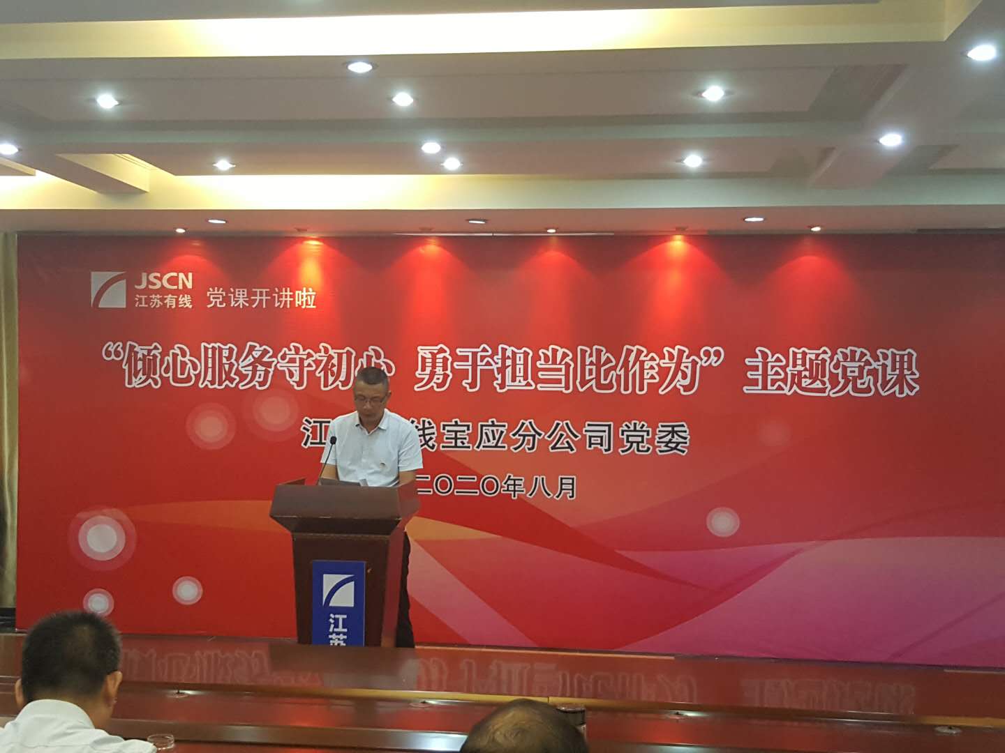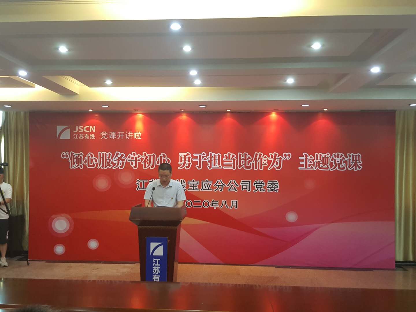 江苏有线宝应分公司党委于8月28日上午开展了“党课开讲啦”—“倾心服务守初心勇于担当比作为”主题党课活动,宝应分公司党委班子全体成员、公司本部全体党员和各广电站站长参加。