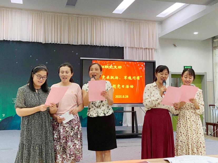 活动最后,与会党员齐聚一堂,开展“党旗飘扬、军魂闪耀”主题党日活动,唱军歌忆往昔峥嵘。会机关、一幼、二幼、三幼小组党员代表分别演唱军歌《军港之夜》《驼铃》等。飞扬的歌声,吟唱难忘岁月,激昂的旋律,演绎强军乐章。通过此次活动,每位参加活动的党员时刻牢记党员身份,在自身发展的同时不忘社会责任,在岗位上继续发扬能吃苦、能战斗的优良传统,同心协力为推动妇联和幼教事业发展发挥自己的光和热。