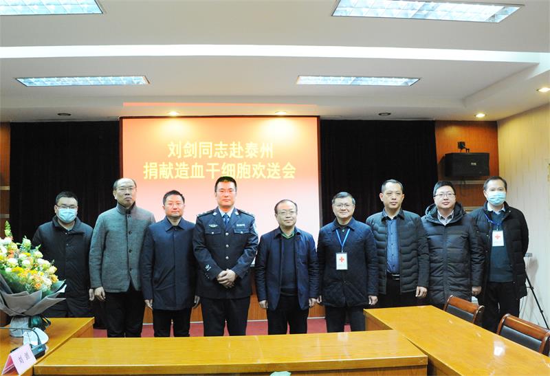 2月1日上午,一场特别的欢送仪式在宝应法院举行,这场仪式的主人公叫刘剑,中共党员,现任县法院法警大队副大队长,此次他将赴泰州市人民医院完成一项特殊使命——为一名白血病患者捐献造血干细胞,延续“生命火种”。县政府副县长、县红十字会名誉会长杨洪国,县法院党组书记、院长陈国俊,县红十字会会长查爱国,县委政法委副书记钱文峰,县委宣传部新时代文明实践服务中心副主任陈曦,县红十字会秘书长王晓波等领导出席欢送仪式。