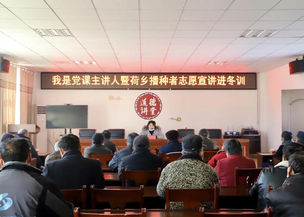 2月4日下午,宝应县“荷乡播种者”志愿宣讲团成员朱岳沁走进望直港镇牌楼村,就党史、乡村振兴等主题进行宣讲。牌楼村村干部、部分群众代表近50人参加活动。