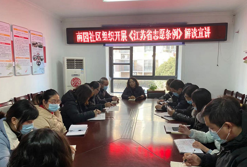 南园社区党委组织党员学习《江苏省志愿服务条例》,学习雷锋精神和志愿者文化,传承新时代奉献互助精神,并联合情满荷香志愿服务队为留守儿童提供关爱和帮助。
