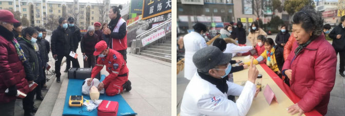 刘沟社区党委联合红十字会、第三人民医院,东门社区联合美年大健康体检中心的医护人员、红十字会和雄鹰救援队的党员志愿者开展急救知识培训、健康义诊志愿服务活动。
