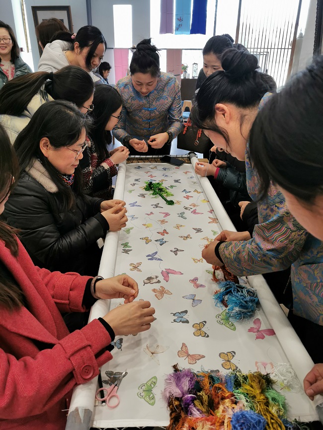 一是参观宝应县乱针绣人才艺术馆。参观了解非遗项目“鲁垛乱针绣”独特的刺绣艺术的起源、历史发展及乱针绣的成果,听取80后绣娘莫元花通过示范带动,让更多农村留守妇女走上脱贫致富之路的先进事迹。