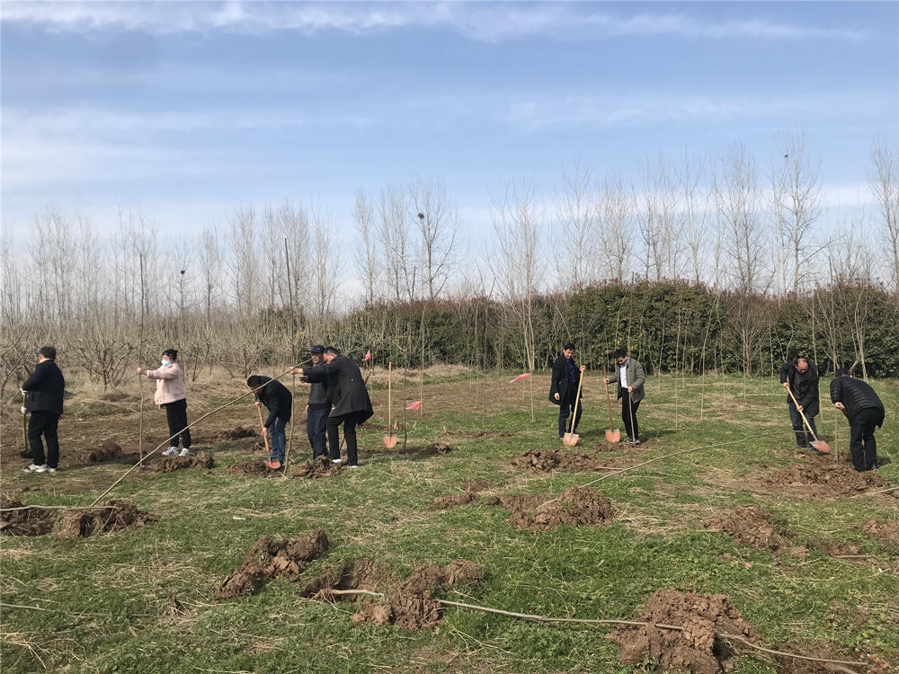 全体党员赴宝应湖国家湿地公园开展义务植树活动。植树现场,两人一组,互相配合,扶树、填土、浇水,齐心协力,经过近1个小时的劳作,栽植了100多株栾树,一排排苗木迎风挺立,生机盎然。