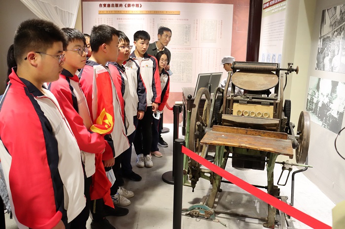 迎着古色古香的驻马街一路寻访,同学们来到了《苏中报》纪念馆。首先映入眼帘的是悬挂在门楣上的“湖畔雄风”四个大字,它喻示着射阳湖从遥远的汉代到新中国成立英雄辈出。馆中陈列了当年苏中区党委创办的《苏中报》曾使用过的印刷工具、生活用品等革命文物,重现了曾经的芦苇荡、印刷报纸等场景。