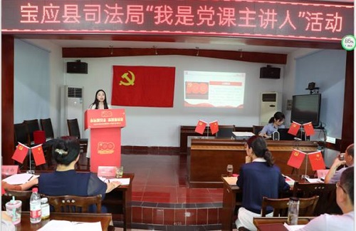 为热烈庆祝中国共产党成立100周年,推动党史学习教育深入开展,宝应县司法局以开展讲党史赛党课比赛、颁发“光荣在党50年”纪念章、新党员入党宣誓、对党说句心里话视频录制、“我与党旗合个影”等方式,带领全系统党员干部接受一次红色洗礼,推进党史学习教育走深走实。