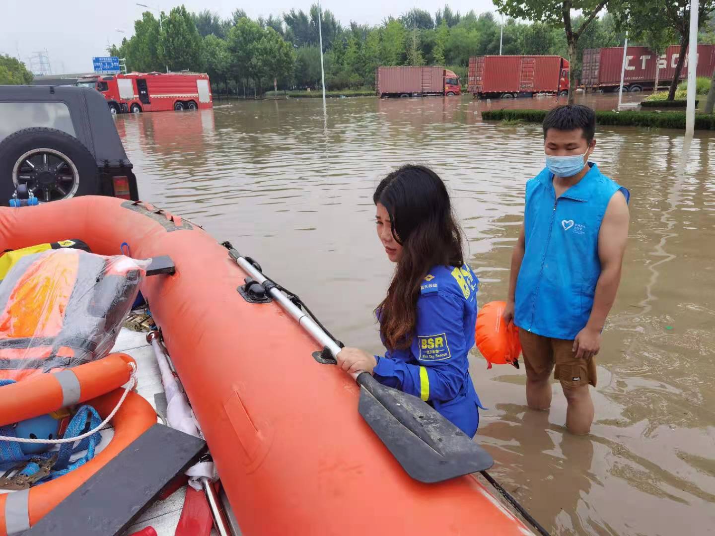 此次河南防汛抗灾形势十分严峻,朱旦丹既是“柳堡二妹子”战士,又是蓝天救援队员,她义无反顾踏上抗洪救灾的路途,连夜驰援河南。7月21日晚上11点,到达郑州后,朱旦丹和其他队员便立即展开救援工作,搜寻失踪人员,转移积水区域被困人员,进行物资运送等。