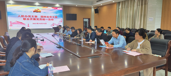 为深入开展党史学习教育,加强支部间工作交流与联系,10月15日上午,人防办党支部和园林处党支部联合开展10月份“统一活动日“活动。局党委委员、人防办副主任戴汝新,人防办党支部及园林处党支部全体党员参加活动。活动由人防办党支部书记冯瑾主持。