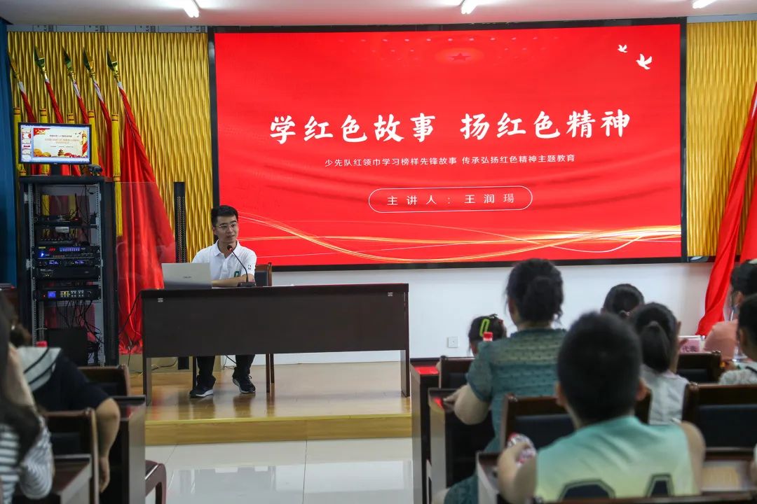 镇团委副书记王润瑒做了红色故事宣讲,他把一个个抗日英雄的事迹编成一个个有趣的小故事,用生动的语言带领孩子们感受战场上的感人故事,让孩子们一起感受战争的刀剑无眼及战友情谊,让小朋友们对英雄有进一步了解,也明白现在的幸福生活来之不易。小朋友们纷纷表示要好好学习,报效祖国。