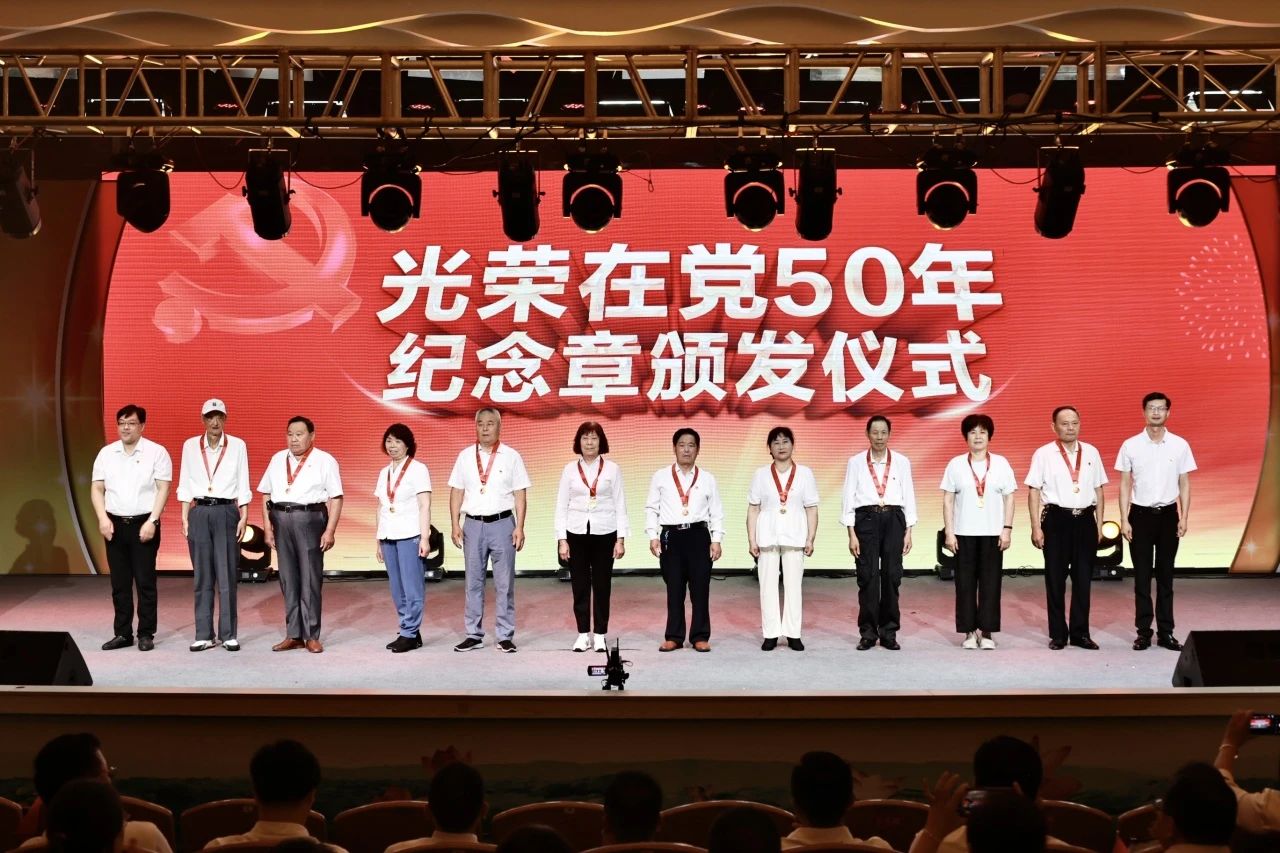 一次纪念章颁发暖初心。活动期间,安宜镇在庆祝中国共产党成立103周年大会暨文艺演出活动中,为党龄50年的老党员颁发了“光荣在党50年”纪念章,引导老同志真正做到“离岗不离党,退休不褪色”。山阳镇党委副书记冯森林向支部三位老党员颁发了“光荣在党50年”纪念章,并为两位80岁、三位70岁的老同志过集体生日,让他们在鲜花和掌声之中享受大家庭的温暖。县检察院、县农业农村局、县人民医院等也分别采取举办仪式、上门慰问等方式为老同志颁发纪念章,向老党员们致以亲切问候和崇高敬意。