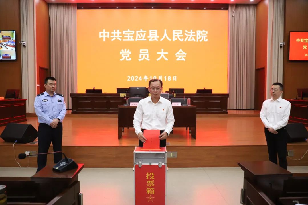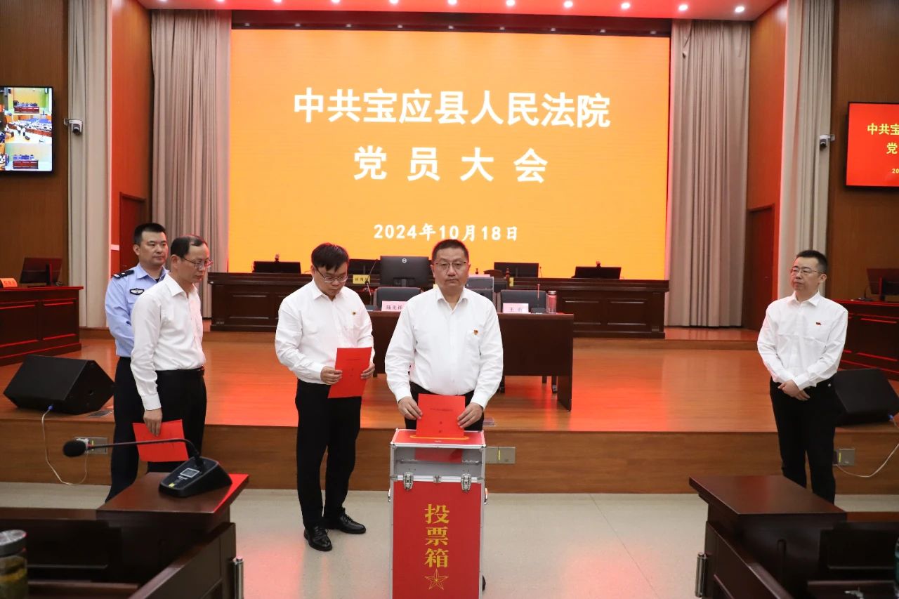 大会严格按照组织程序,以举手表决的方式通过了选举办法、监票人和计票人名单、机关党委候选人名单。大会通过无记名投票的方式,选举产生了中共宝应县人民法院新一届机关委员会委员。