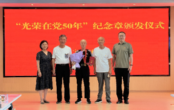 近日,县科协举行“光荣在党50年”纪念章颁发仪式,全体党员干部及部分退休党员参加活动。