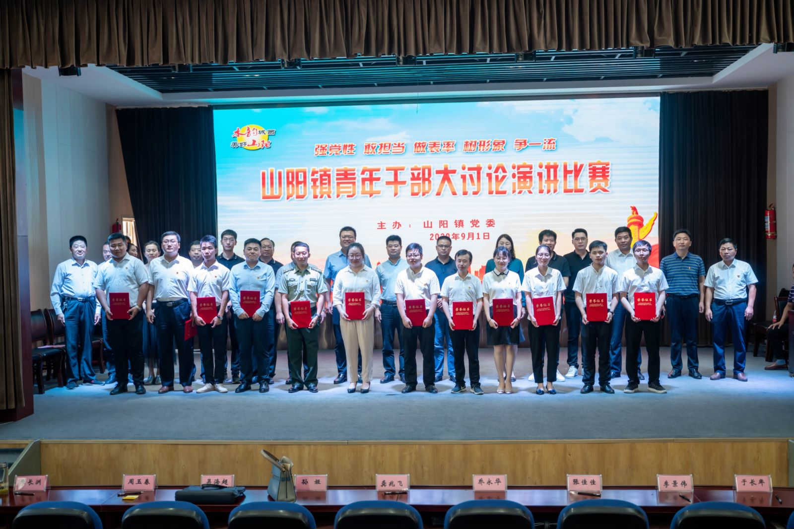 为了进一步丰富大讨论形式,推动基层青年干部思想解放、能力提升、作风改变,9月1日下午,山阳镇隆重举行青年干部“五个对得起”大讨论演讲比赛。活动邀请县委组织部、县纪委、县委宣传部、团县委、县妇联、县融媒体中心相关领导和企业家、党组织书记代表担任评委及颁奖嘉宾。镇党务条线全体人员,全镇机关、部门单位、村(居)45周岁以下人员参加活动。