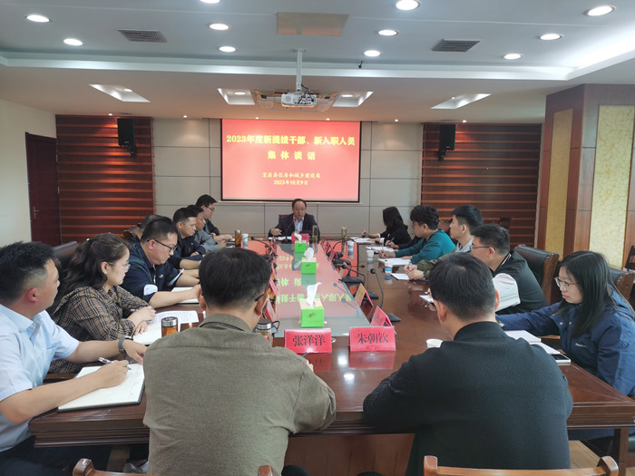 10月9日上午,县住建局召开新提拔干部、新入职人员集体谈话,勉励新提拔干部、新入职人员在新的岗位上开好头、起好步,真正成为我县住房和城乡建设事业高质量发展的中坚力量。