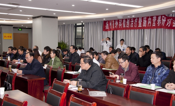 1月14日,由扬州市医学会、周茂松名师工作举办的,“扬州普外科微创治疗暨肠内营养研讨会(宝应站)”在氾水人民医院如期举行。会议特邀苏北人民医院陈平、石磊、赵伟3位专家作专题讲座。全县医务工作者等160余人参加会议。
