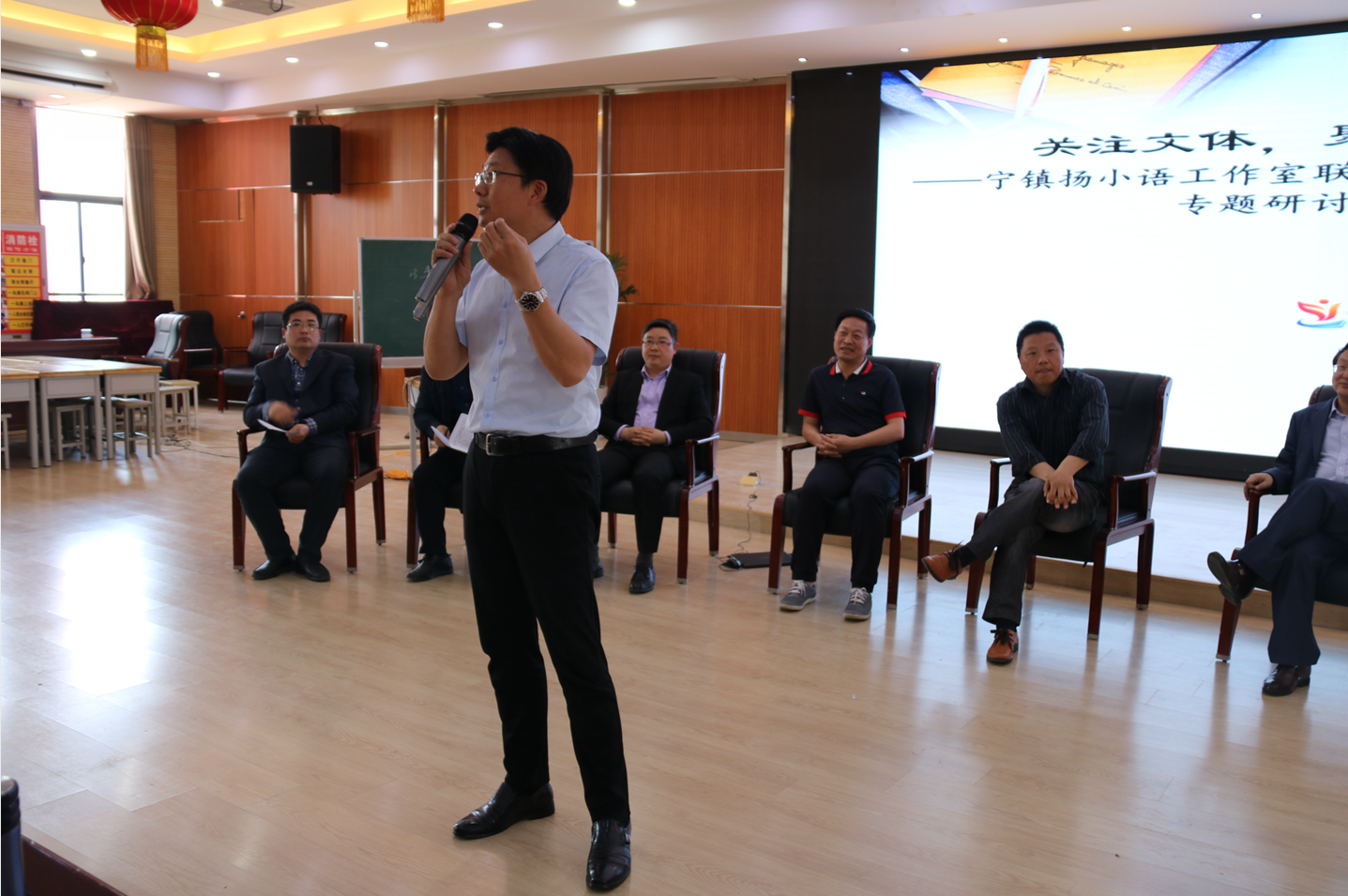 近日,张宏军工作室与孟纪军、巫新秋2个工作室组成宁镇扬小语工作室联盟,在栖霞区实验小学尧辰路校区四楼报告厅举行了“故事类文本”专题研讨会。《小学教学设计》主编王冬精,栖霞区小语教研员陈道佩,3个工作室及栖霞区部分语文老师共计200人参加活动。 活动中围绕“故事类文本如何教”展开沙龙研讨,张宏军就论题发表“聚焦情节讲完整,聚焦重点讲精彩”的观点。 王冬精主编对本次活动作了总结,认为此次活动对故事类文本阅读教学有积极引导作用,并对工作室联盟的一路成长给予了充分肯定。